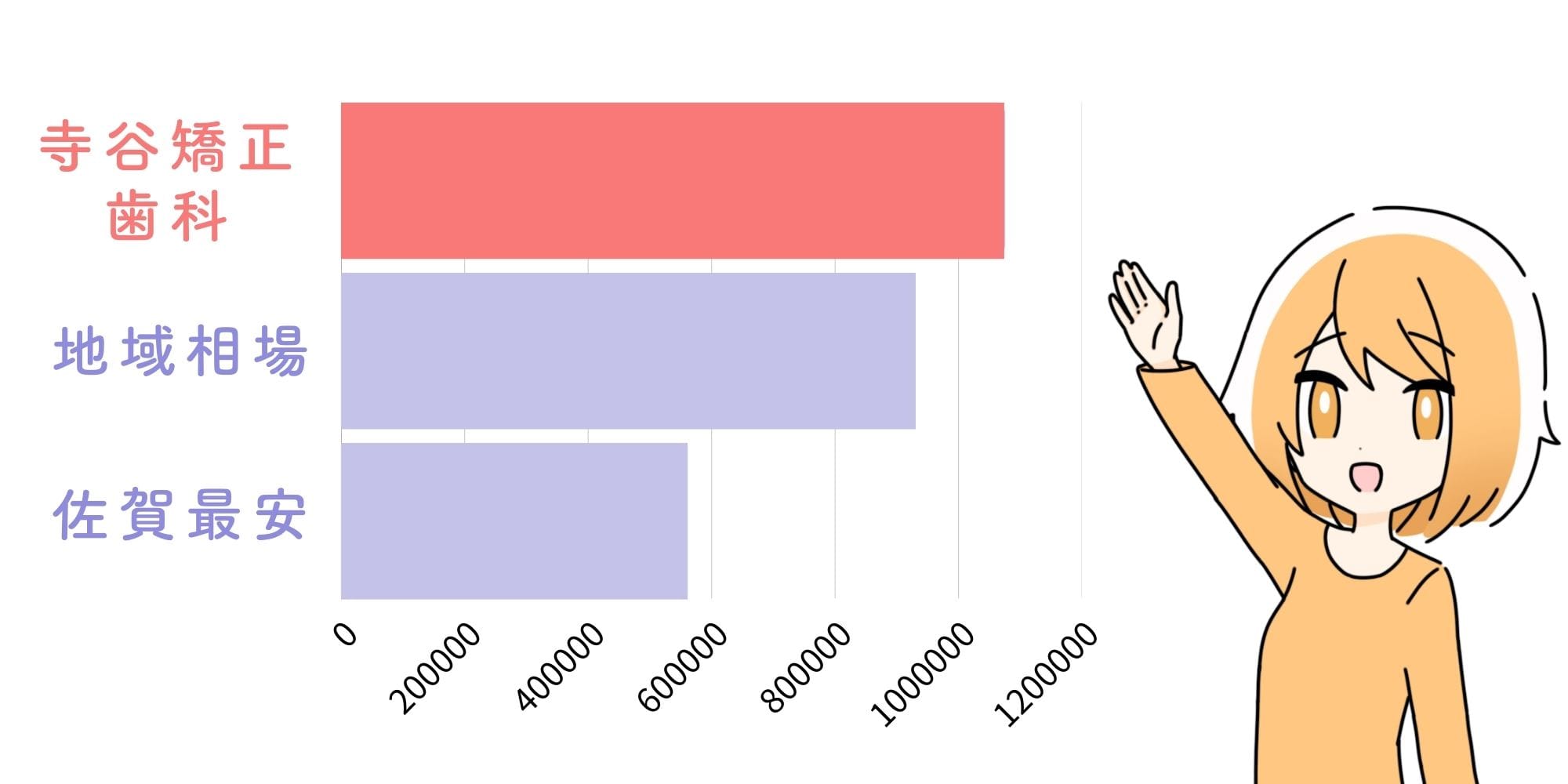 TERRA寺谷矯正歯科クリニックの全顎矯正は1,075,800円と、佐賀市内の一般的な相場(約800,000円)と比べるとかなり高めの設定となっています。